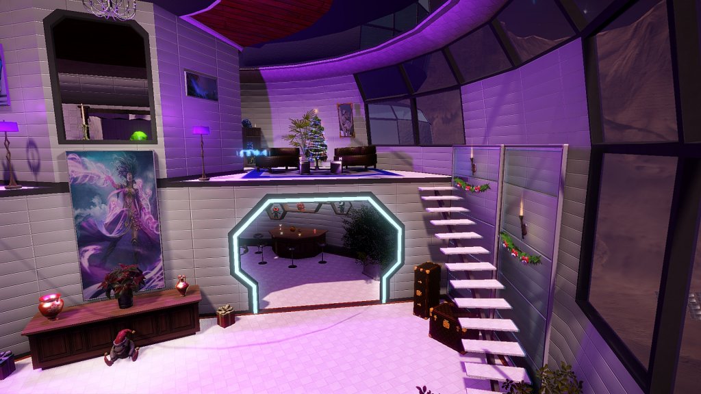 After a hearty hunt or mining run, you might want to relax a bit and toss back a few. There are goodies in the Snack Bar, a comfortable livingroom and upstairs sitting area, and even a pool to have a swim.